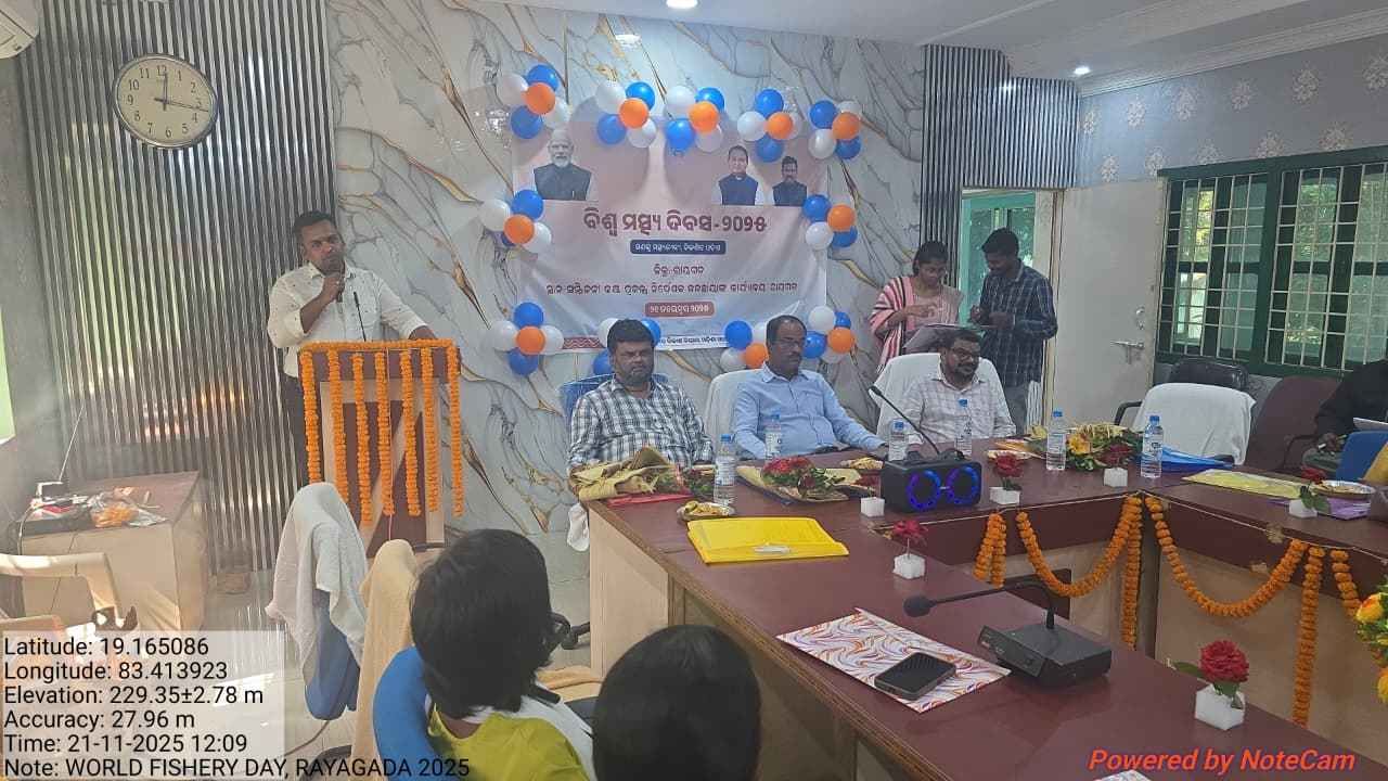 ରାୟଗଡ଼ ଜିଲ୍ଲା ପ୍ରକଳ୍ପ ନିର୍ଦ୍ଦେଶକ, ଜଳଛାୟା ଙ୍କ ସମ୍ମିଳନୀ କକ୍ଷ ଠାରେ ଜିଲ୍ଲା ସ୍ତରୀୟ ବିଶ୍ବ ମତ୍ସ୍ୟ ଦିବସ, ୨୦୨୫. ମହା ସମାରୋହରେ ପାଳନ କରାଯାଇଛି। ୫୦ ରୁ ଉର୍ଦ୍ଧ୍ବ ମତ୍ସ୍ୟ ଚାଷୀ ତଥା ମହିଳା ସ୍ଵୟଂ ସହାୟକ ଗୋଷ୍ଠୀ ର ମାଁ ମାନେ ଏହି କାର୍ଯ୍ୟକ୍ରମ ରେ ଅଂଶ ଗ୍ରହଣ କରିଥିଲେ। କାର୍ଯ୍ୟକ୍ରମରେ ଜିଲ୍ଲା ମୁଖ୍ୟ ପ୍ରାଣୀ ଚିକିତ୍ସା ଅଧିକାରୀ, ରାୟଗଡ଼ ଶ୍ରୀ ମୃଣ୍ମୟ ପଣ୍ଡା, ଜିଲ୍ଲା ମୁଖ୍ୟ କୃଷି ଅଧିକାରୀ ଶ୍ରୀ ଏଶ୍. କେ. ଏହେସାନ, ଜିଲ୍ଲା ମତ୍ସ୍ୟ ଅଧିକାରୀ, ରାୟଗଡ଼ ଶ୍ରୀ ସୁଶାନ୍ତ କୁମାର ଗଉଡ, ଜିଲ୍ଲା ପ୍ରକଳ୍ପ ସଂଯୋଜକ, ମିଶନ ଶକ୍ତି, ରାୟଗଡ଼ ଶ୍ରୀ ସଙ୍କର ଚାଲାଣ, ଅତିରିକ୍ତ ପ୍ରକଳ୍ପ ନିର୍ଦ୍ଦେଶକ, ମୃତ୍ତିକା ସଂରକ୍ଷଣ ଏବଂ ଜଳଛାୟା ବିଭାଗ ଶ୍ରୀ ସମ୍ପଦ ସ୍ଵରୂପ ସାମଲ ଯୋଗ ଦେଇଥିଲେ । ଏହି ଅବସରରେ ସଫଳ ମତ୍ସ୍ୟଚାଷୀ ଏବଂ ମହିଳା ସ୍ବୟଂ ସହାୟକ ଗୋଷ୍ଠୀ ଙ୍କୁ ସମ୍ବର୍ଦ୍ଧିତ କରାଯାଇଥିଲା । ରାୟଗଡ଼ ଜିଲ୍ଲାର ମତ୍ସ୍ୟ ବିକାଶ କ୍ଷେତ୍ରରେ କାର୍ଯ୍ୟଧାରା ଉପରେ ଜିଲ୍ଲା ମତ୍ସ୍ୟ ଅଧିକାରୀ ନିଜର ଅଭିଭାଷଣ ରଖିଥିଲେ। ରାଜ୍ୟ ସରକାର ଙ୍କ ବିଭିନ୍ନ ଯୋଜନା ସମ୍ପର୍କରେ ସହକାରୀ ମତ୍ସ୍ୟ ଅଧିକାରୀ, ମୁଖ୍ୟାଳୟ, ରାୟଗଡ଼ ସୁଶ୍ରୀ ପ୍ରୀତିଶ ନନ୍ଦା ପଟ୍ଟନାୟକ ଆଲୋଚନା କରିଥିଲେ। ଏହା ସହିତ ମତ୍ସ୍ୟ ସମ୍ପଦର ସୁରକ୍ଷା, ଜଳ ସମ୍ପଦ ର ଦାୟିତ୍ଵପୂର୍ଣ୍ଣ ପରିଚାଳନା ଦିଗ, ମତ୍ସ୍ୟ ଉତ୍ପାଦନ ବୃଦ୍ଧି କରିବା ସହ ତୃଣମୂଳ ସ୍ତରରେ ଗ୍ରାମୀଣ ଅର୍ଥ ନୀତି ର ବିକାଶ ପାଈଁ ପ୍ରାଣୀ ପାଳନ କୁକୁଡ଼ା ପାଳନ ମତ୍ସ୍ୟ ଚାଷ କିପରି ସହାୟକ ହେଇପାରିବ ସେ ସମ୍ପର୍କରେ ବିଶେଷଭାବେ ଅତିଥିମାନେ ମତ୍ସ୍ୟ ଚାଷୀଙ୍କର ଦୃଷ୍ଟିଆକର୍ଷଣ କରଥିଲେ । ମତ୍ସ୍ୟ ଚାଷ ମାଧ୍ୟମରେ ସ୍ବାବଲମ୍ବୀ ଚାଷୀ ତଥା ଉଦ୍ୟୋଗୀ ସ୍ରୁଷ୍ଟି କରିବା ଏବଂ ପ୍ରାଣୀ ସମ୍ପଦ କୁ ନିରୋଗ ଏବଂ ନିରାମୟ ରଖିବା ସହ ରାୟଗଡ଼ ଜିଲ୍ଲା କିପରି ମାଛ ଉତ୍ପାଦନରେ ସ୍ୱାବଲମ୍ବୀ ହୋଇପାରିବ ସେ ବିଷୟରେ ଜିଲ୍ଲା ମୁଖ୍ୟ ପ୍ରାଣୀ ଚିକିତ୍ସା ଅଧିକାରୀ ନିଜର ମତବ୍ୟକ୍ତ କରିଥିଲେ l ଏହି କାର୍ଯ୍ୟକ୍ରମକୁ ସୁଚାରୁରୂପେ ଆୟୋଜନ କରିବାରେ ମତ୍ସ୍ୟ ବିଭାଗ ର ସମସ୍ତ ଅଧିକାରୀ ଏବଂ କର୍ମଚାରୀ ସହାୟତା କରିଥିଲେ।