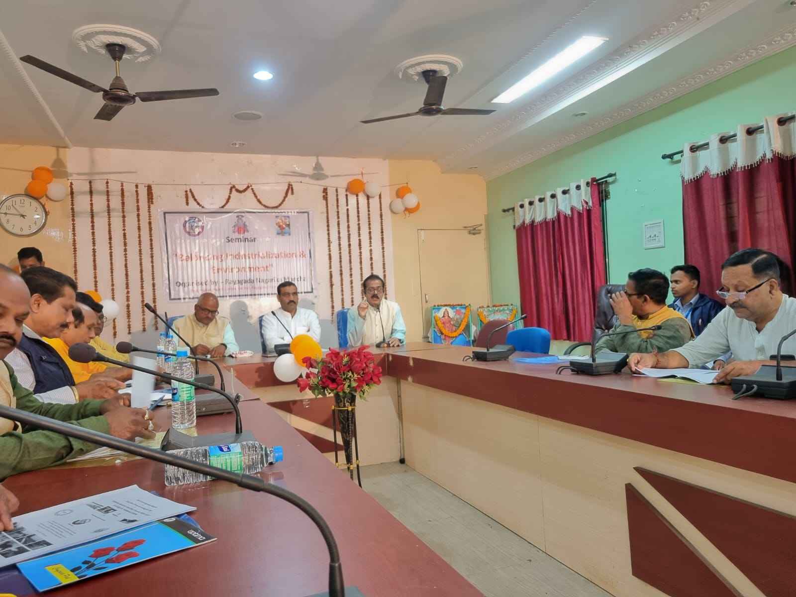 Rayagada(PR) A seminar was organized at the Jalchaya Project Conference Hall in Rayagada District Headquarters on maintaining a balance between environment and industry. The program was organized by Dr. Badal Kumar Tah, President of Rayagada Nagarika Mancha, under the supervision of Shyam Dash, member of the Forum. Annada Panigrahi, Pracharak of the Rashtriya Swayam Sevak Sangh, was the main speaker and Deepak Raut, Pracharak of the Sangh, was the guest of honor. The heads of various organizations of Rayagada, as well as social, commercial and religious institutions, attended the seminar, while representatives of all the blocks of the district also attended. It is believed that the above topic has emerged as an important topic for the future generation and human society.